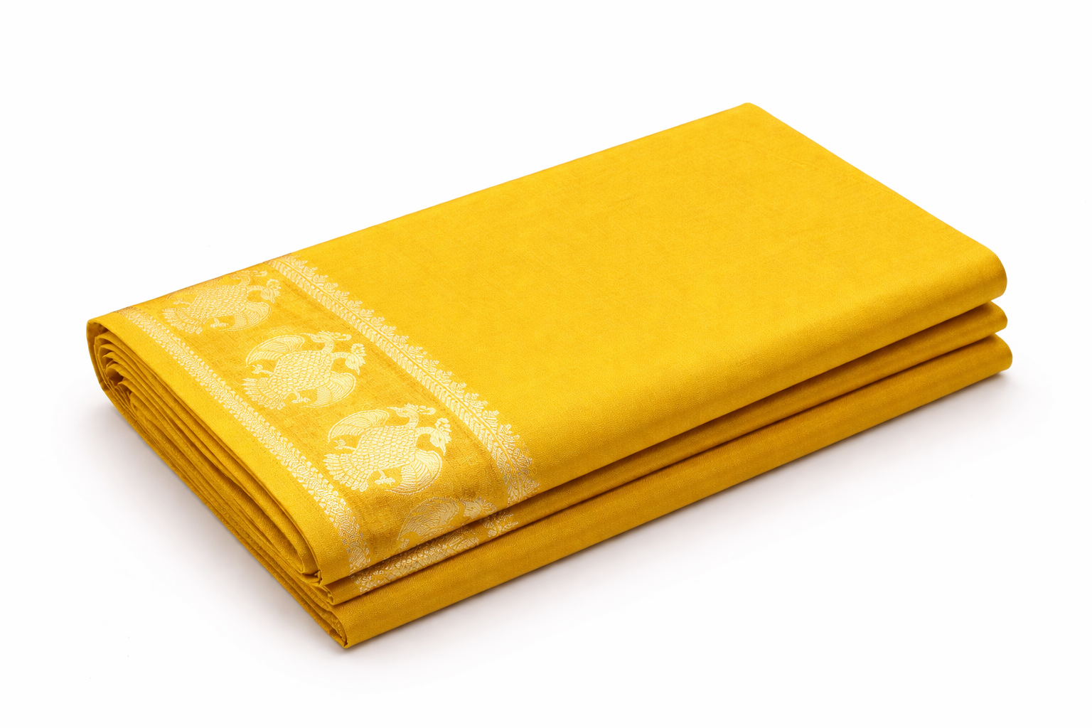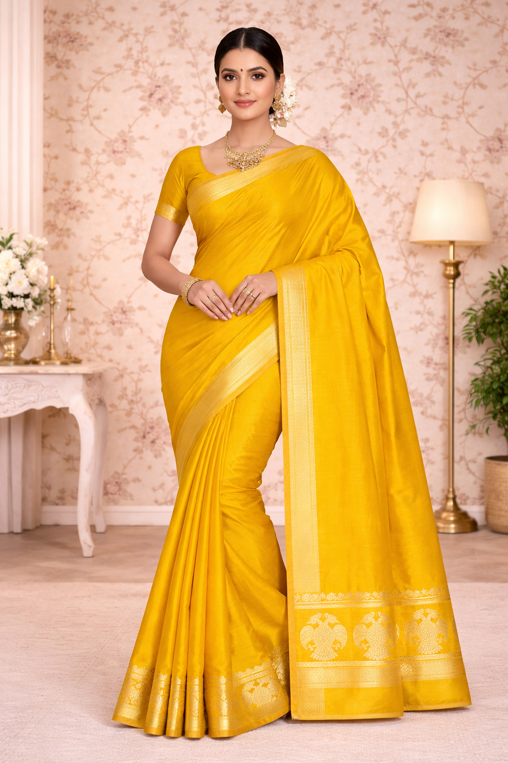 The saree features a subtle plain body that highlights its sophistication, complemented by a rich zari woven border with traditional motifs, adding a touch of heritage charm. Perfect for festive occasions, casual gatherings, or elegant day wear.