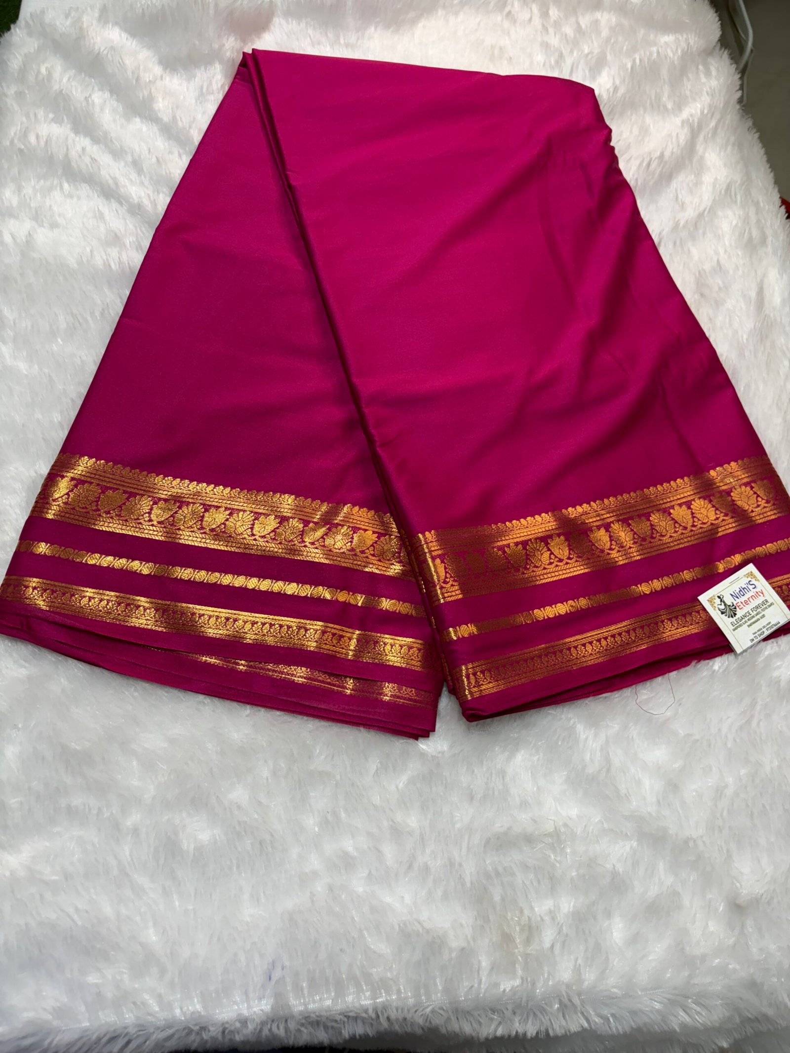 - Design: Plain body with traditional zari border
