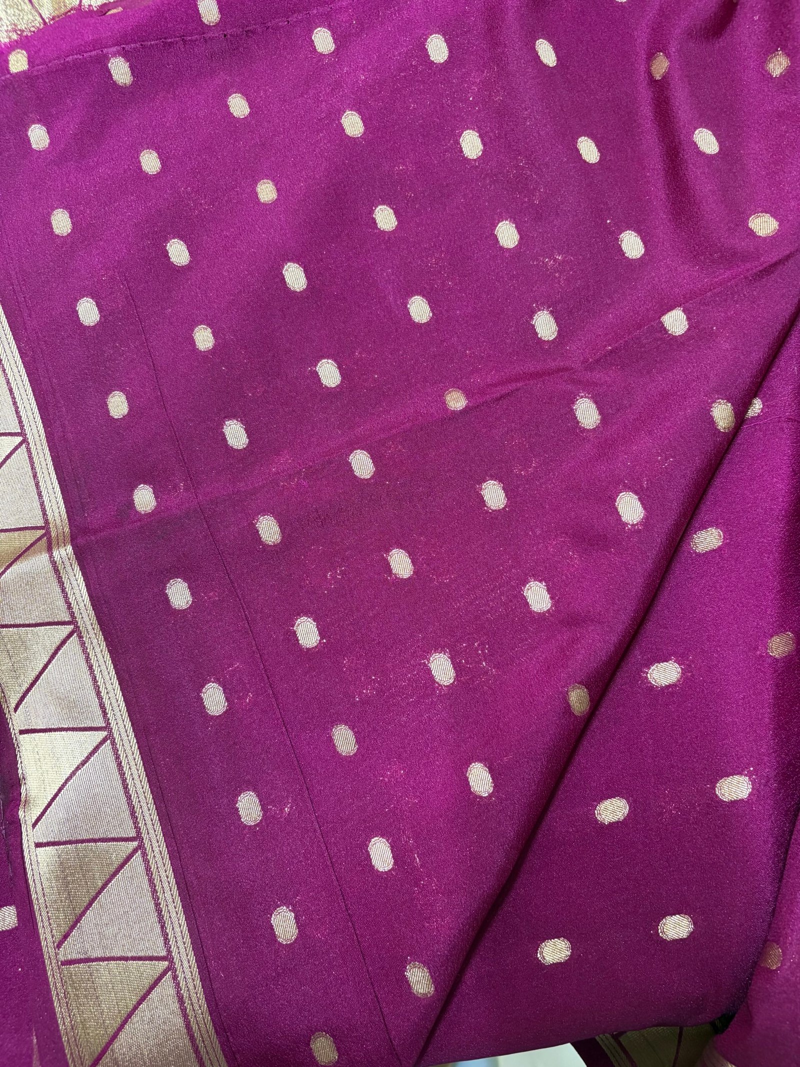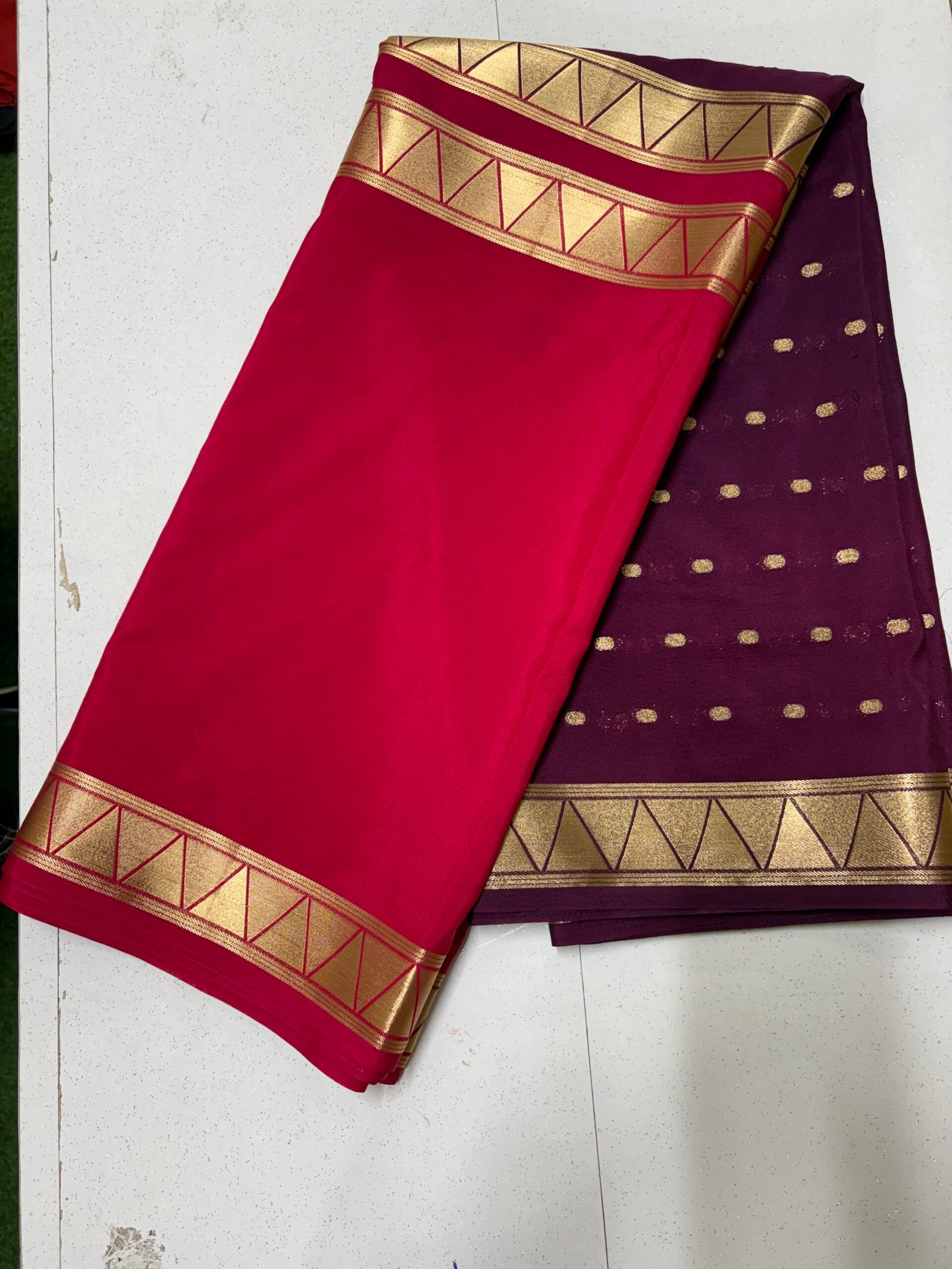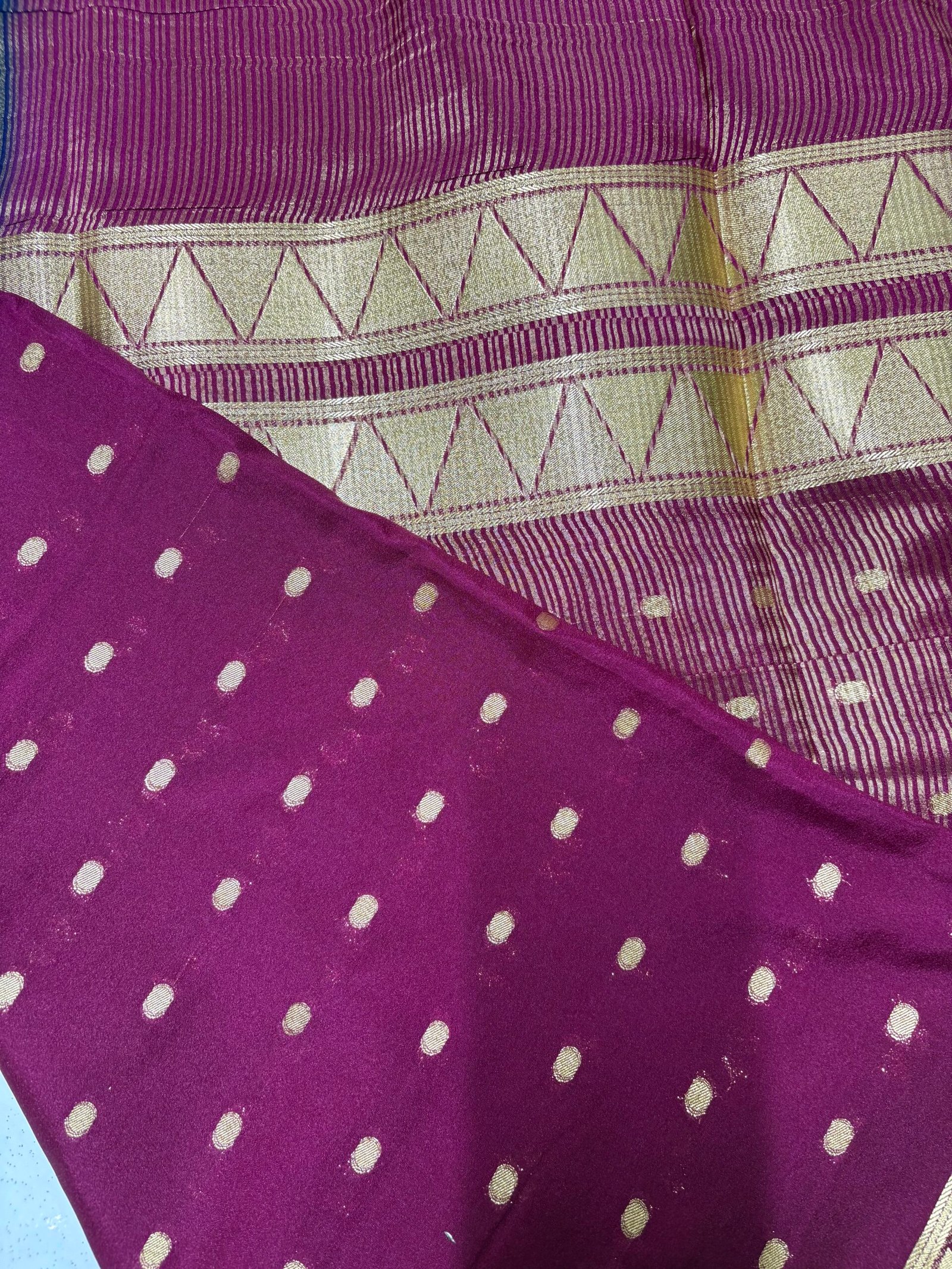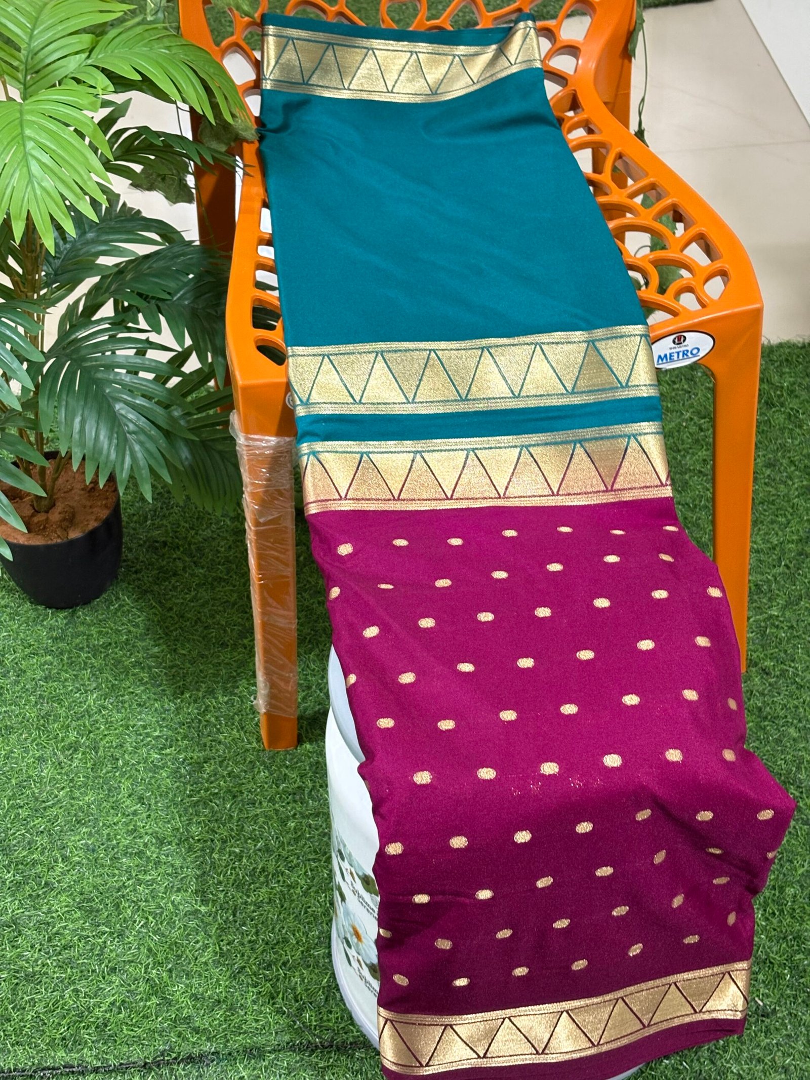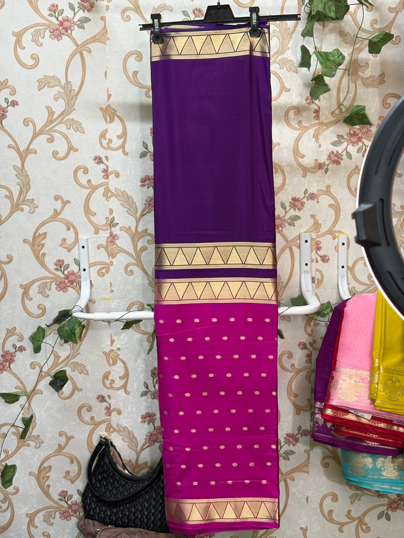 - Design: half and half saree with geometrical golden zari borders with golden zari butas
