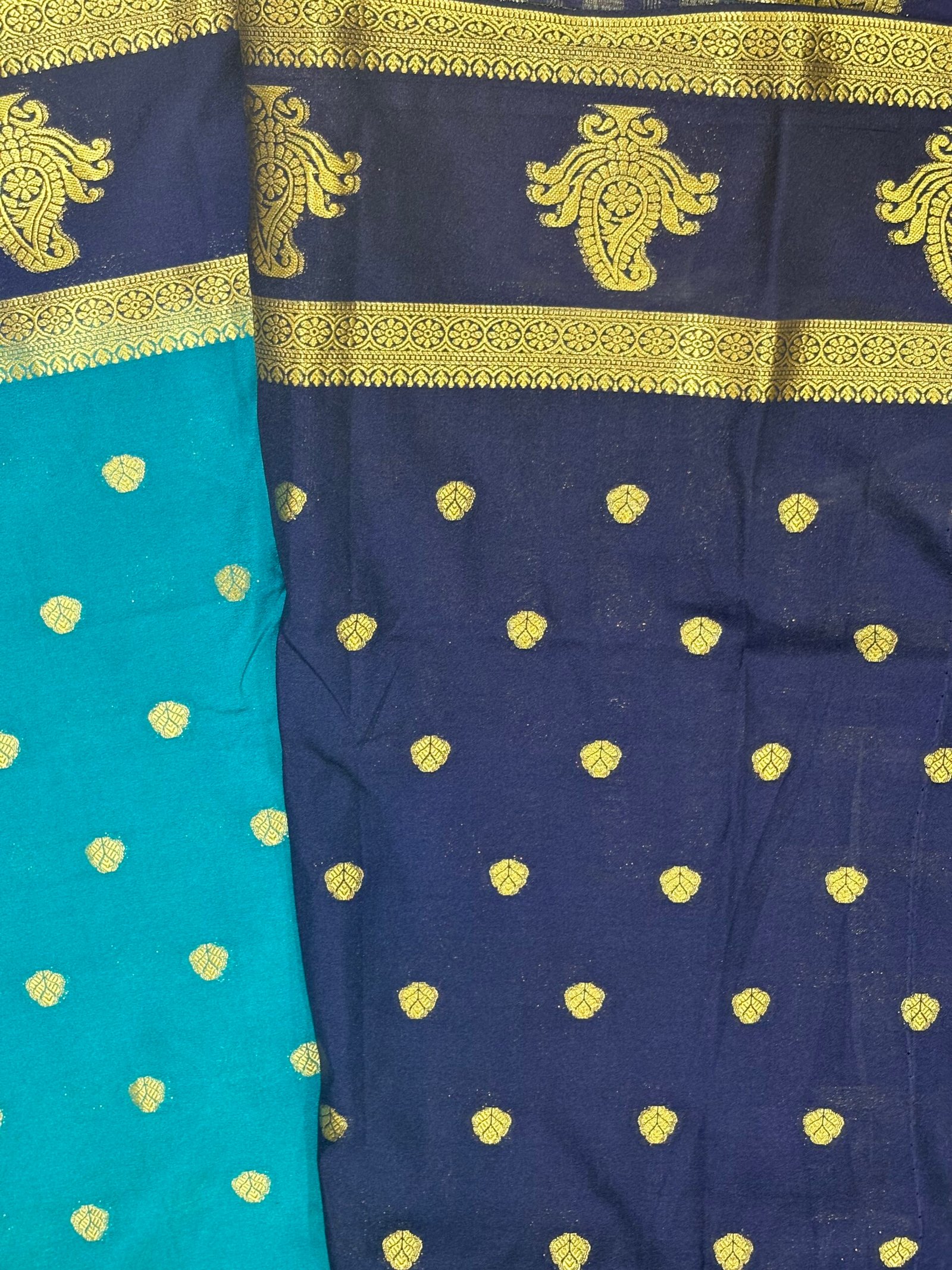 Colour:Sky blue saree with dark blue borders and pallu and boluse.